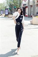 3. 案例三:白色连衣裙搭配蓝色网红裤,搭配一双白色凉鞋,清新脱俗。